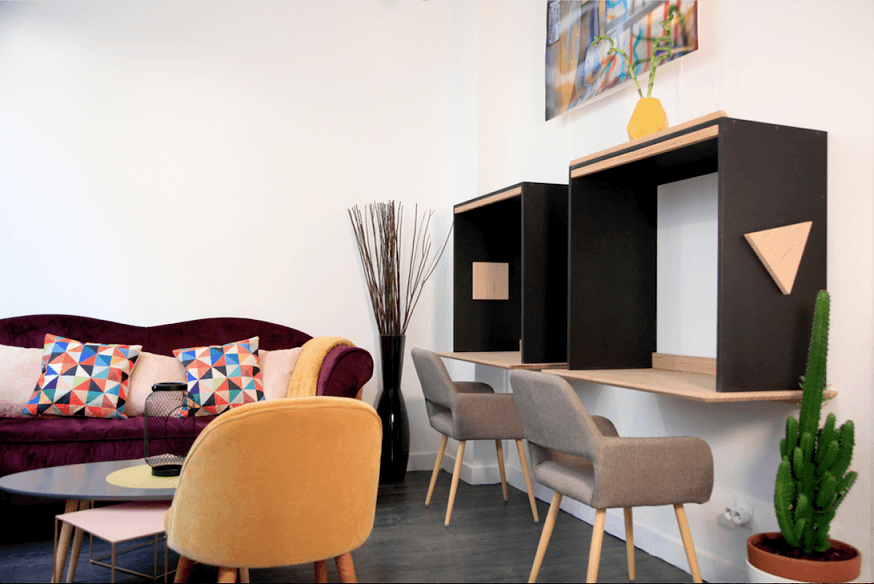 -un espace coworking en open space et avec des bureaux partagés,